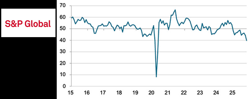 Employment numbers across the construction sector decreased for the eleventh consecutive month in November, reflecting a lack of new work to replace completed projects and elevated wage pressures. The latest fall in staffing levels was the steepest since August 2020. Subcontractor usage also decreased, as has been the case in each month since December 2024.