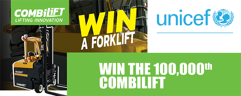 Win Combilift’s Landmark 100,000th Multidirectional Forklift and support UNICEF