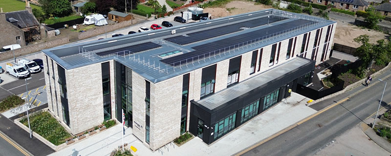 The two-storey £11.4million development in Ellon provides the community with a new family resource centre, library and council offices, representing an important part of the wider masterplan for the area. It has been designed to elevated sustainability standards to reflect its significance, with the aim of achieving ‘net zero’ in operation through the incorporation of renewable energy systems, including photovoltaic (PV) panels, heat pumps and heat recovery ventilation, as well as a highly insulated and airtight envelope to minimise energy use.