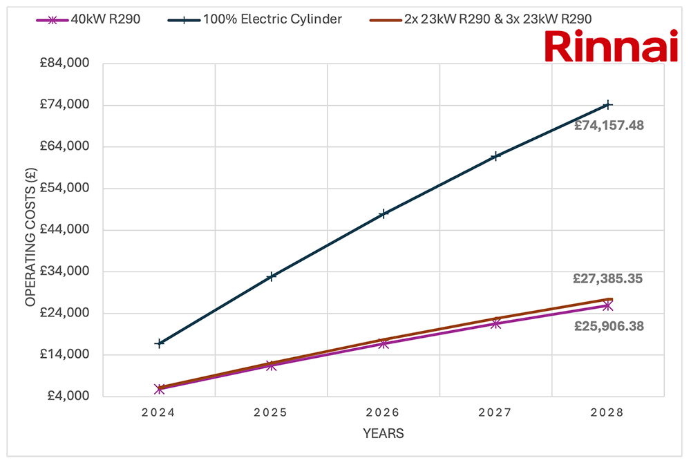 Rinnai offered a choice of solutions all with capital, operational and carbon modelling as part of the offering, so that the decision makers could select the optimum solution for their needs. Based upon the data the site specifically requested an Air-Source Heat Pump replacement.