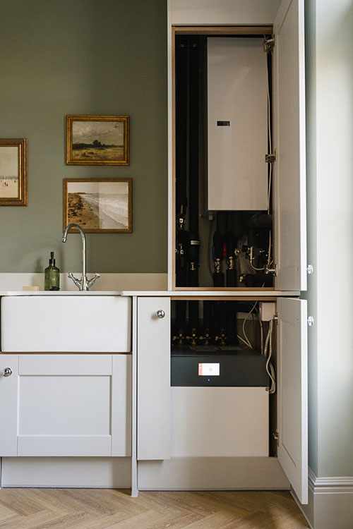 The heat network uses a unique, first-of-its-kind technology in the UK. It draws stable temperature water from Portsmouth Water’s nearby underground Hoads Hill Reservoir and feeds it to an energy centre where a heat exchanger transfers energy from the water into an ambient heat network. Individual heat pumps at each property then convert that energy into space heating and hot water. The heat network serving the properties is a closed loop system, separate from the water network that circulates water from the reservoir to the energy centre. This ensures there is no risk to drinking water quality or supply.