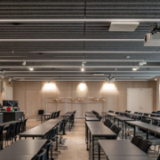 Lighting colour temperature (4,200 Kelvin), high colour rendering (CRI 90), and a unified glare rating of 19 ensure compliance with WELL certification criteria, helping to promote productivity and comfort. For added design value, Sonnos pendant luminaires in black were also selected to enhance aesthetics in key areas.
